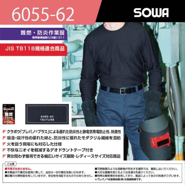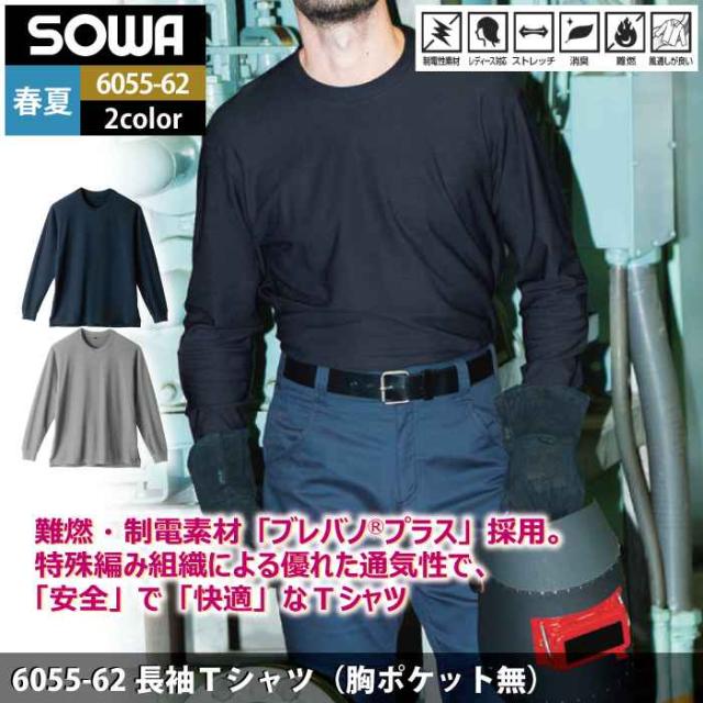 桑和 SOWA 作業服 6055-62 長袖Tシャツ胸ポケ無難燃 5L 春夏用 作業着 ソーワ ワークウェア