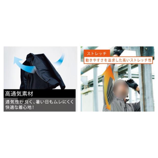 ◇機能:ファスナー引手・ファスナー隠し・胸ファスナーポケット・デオドラントテープ・両側ファスナーポケット・両脇二重ポケット・ノーフォークメッシュ・ドットボタン(隠し)・反射パイピング・両側袖ペン差し・胸ポケット・面ファスナー(隠し)・大容量ポケット・ドットボタン・裾アジャストボタン・ユニセックス対応