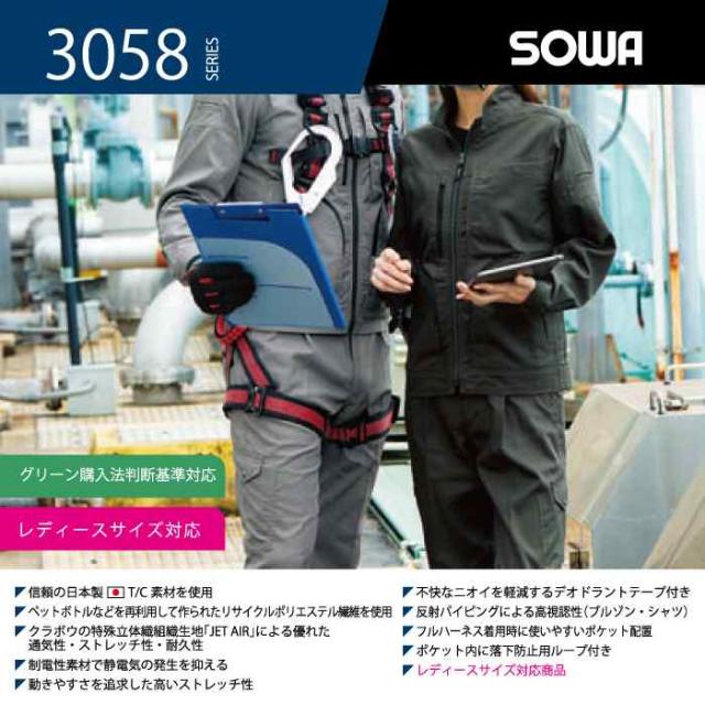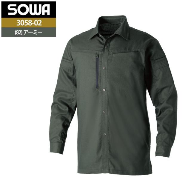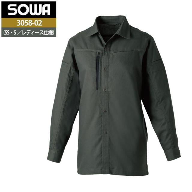 桑和 SOWA 作業服 3058-02 長袖シャツ SS-LL 春夏用 作業着 ソーワ ワークウェア