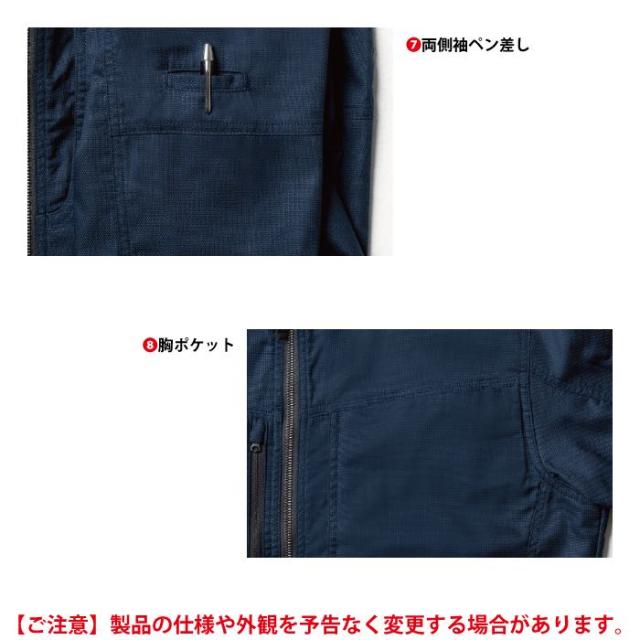 ◇機能:ファスナー隠し・胸ファスナーポケット・デオドラントテープ・ノーフォークメッシュ・ドットボタン(隠し)・反射パイピング・両側袖ペン差し・胸ポケット・ドットボタン・サイドスリット・ユニセックス対応