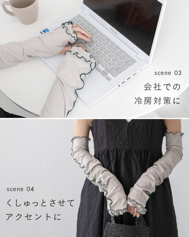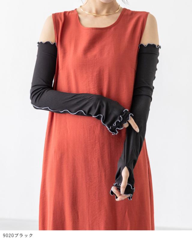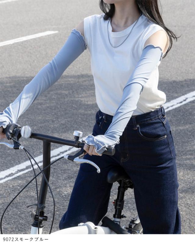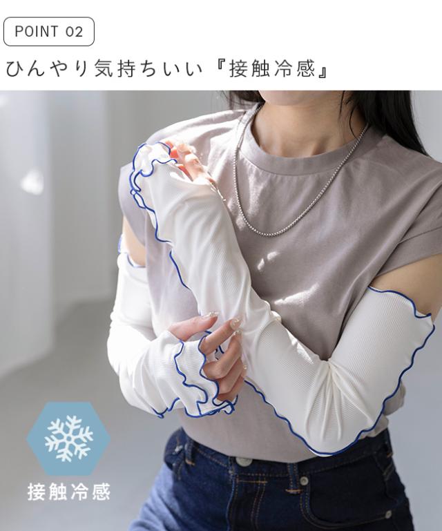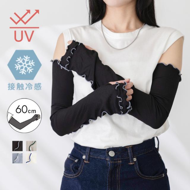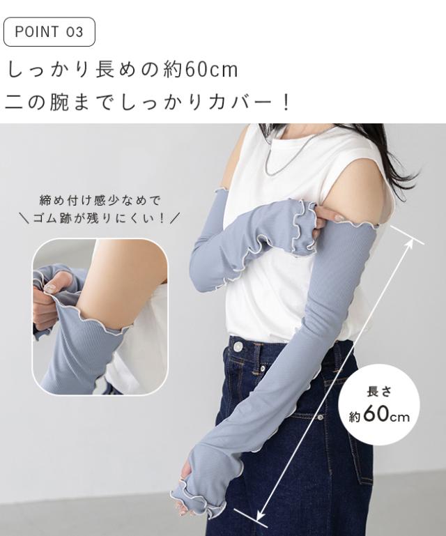 アームカバー レディース 腕 カバー アームガード 雑貨 紫外線カット UVカット uv 日よけ 日焼け 日焼け対策 日焼け防止 upf50+ 日除け 無地 締め付けない 指穴 長め 60cm 指なし 親指あり 手の甲 ロング ロング丈 通勤 冷房対策 UVカット UV 紫外線 紫外線予防 紫外線対策 UV対策 冷感 接触冷感 ひんやり フリル かわいい おしゃれ アウトドア キャンプ 山 川 レジャー フェス おでかけ お出かけ 農作業 カフェ ショッピング 買い物 お迎え 公園 送り迎え 子育て 子連れ 屋外 外履き デイリー 日常 普段使い 日常使い ドライブ 運転 車 白 ホワイト 黒 ブラック 灰 グレー 青 ブルー フリーサイズ Free 春 夏 秋 その他 wellegselect ウェレッグセレクト outletshoes アウトレットシューズ welleg ウェレッグ