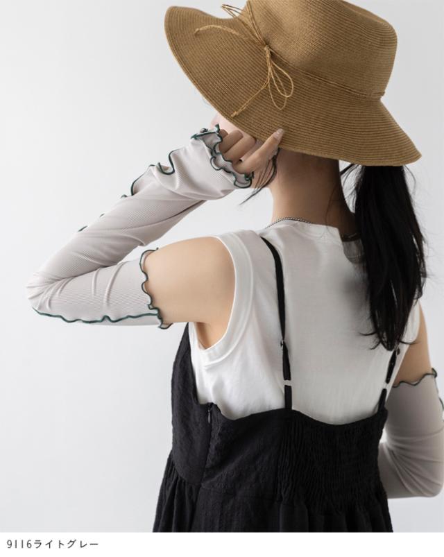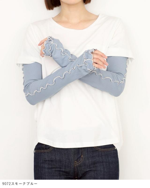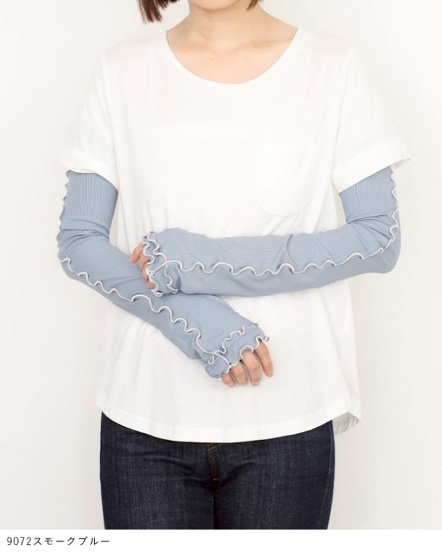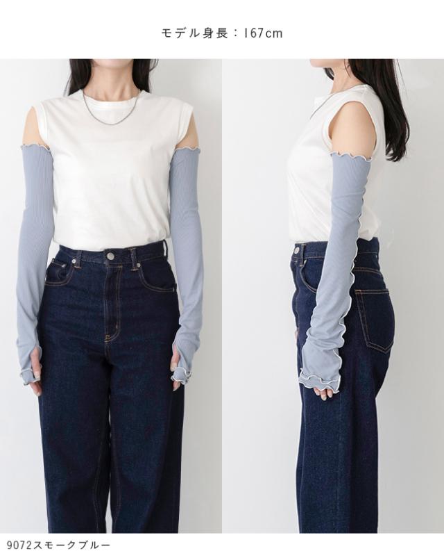 お洋服と合わせても浮かずに、おしゃれも楽しめるメロウ&リブデザインのアームカバー◎