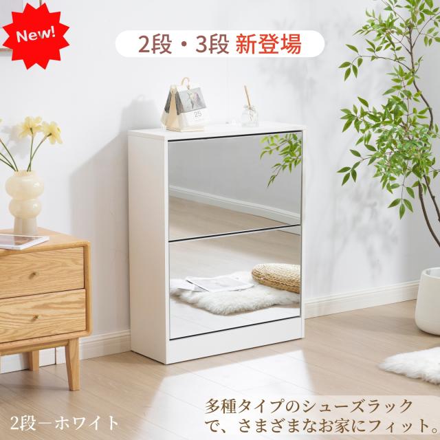 【鏡タイプ】下駄箱2段 シューズラック 玄関収納 ひとり暮らし スリムタイプ 靴収納ラック 靴収納棚