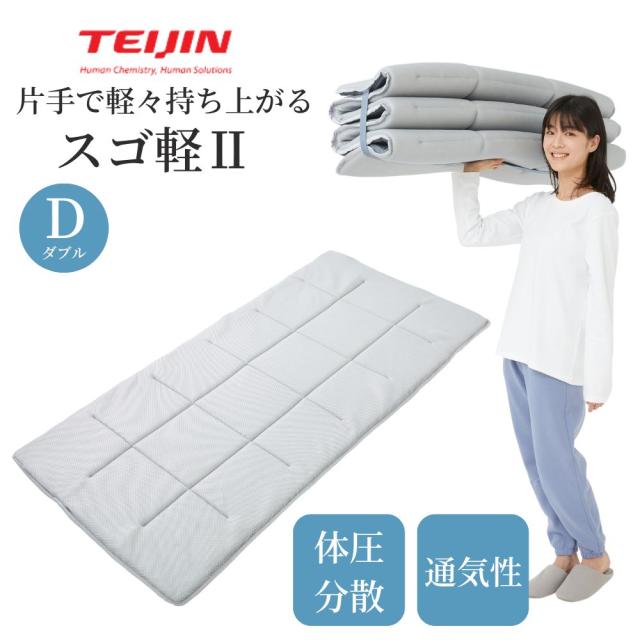 【メーカー直送品・ダブル】日本製 テイジン 軽量 コンパクト 敷布団 スゴ軽 2 布団 敷き布団 敷布とん しきふとん シングル サイズ 帝人 TEIJIN 体圧分散 へたりにくい 軽い 三つ折り 六つ折り 3つ折り 6つ折り ゴム 持ち運び 新生活 ズレにくい オールシーズン