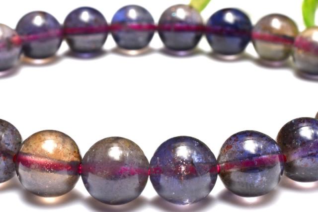 【1点物】AA☆華やかな多色 アイオライトサンストーン 8.5mm ブレスレット 恋愛運・金運・仕事運【ネコポス送料無料】_MC7983