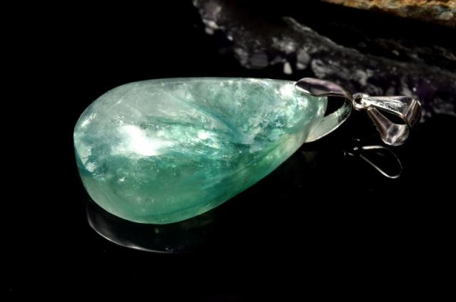 【1点物】シルバー925◇AA+高品質 フックサイトシリカ 26x16mm ドロップ ペンダントトップ _PD1249