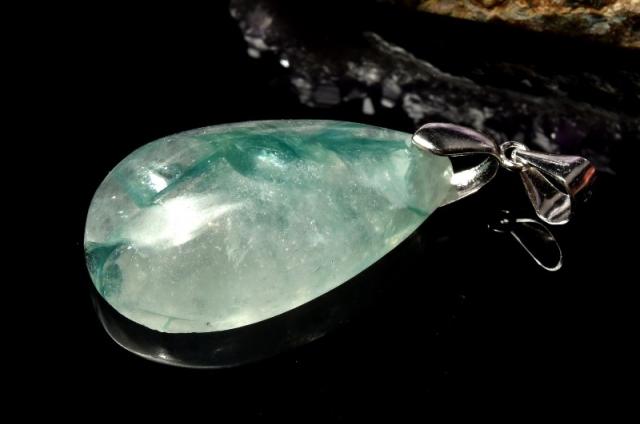 【1点物】シルバー925◇AA+高品質 フックサイトシリカ 26x15mm ドロップ ペンダントトップ _PD1252