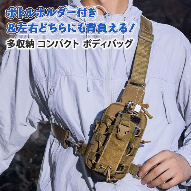 新作 ボトルホルダー付き&左右どちらにも背負える! 多収納 コンパクト ボディバッグ メンズ かっこいい おしゃれ ボディーバッグ ポシェット 軽量 小さめ 斜めがけ ボトルカバー スマホ アウトドア ランニング