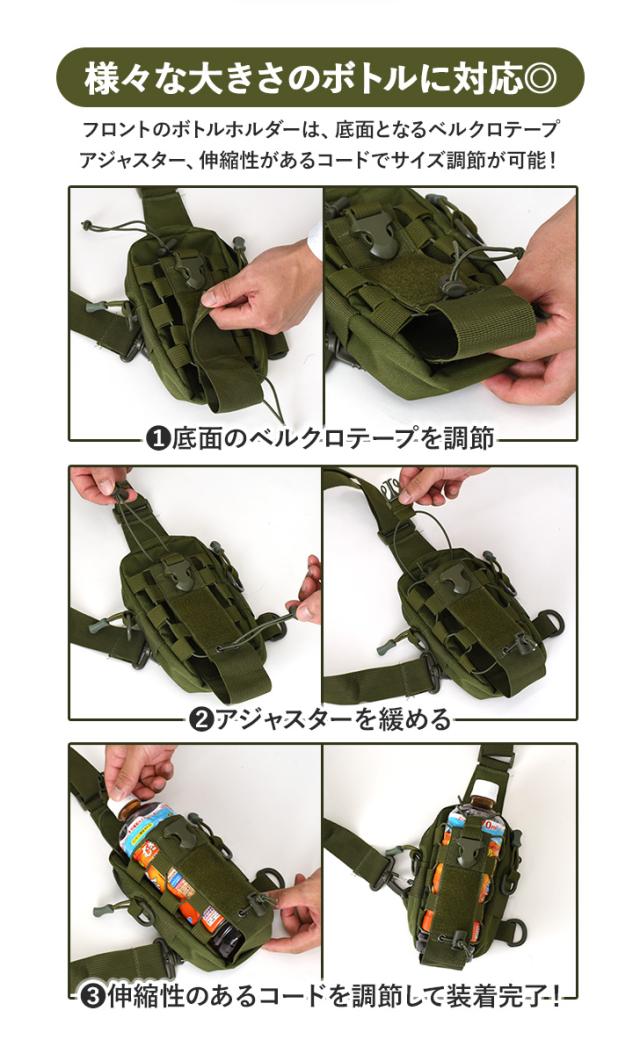 ボトルホルダー付きの多機能ボディバッグ