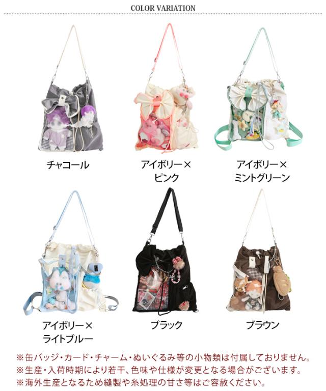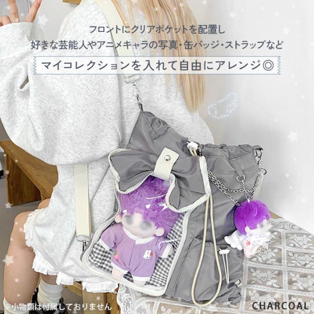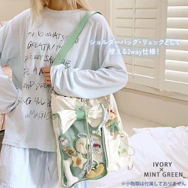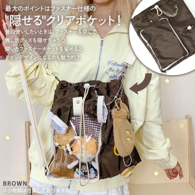 新作 ファスナーでスタイルチェンジ! 2way 隠せる クリアポケット 推し活バッグ 透明 ぬい活 軽量 推し活 ショルダーバッグ レディース 大容量 大きめ A4 斜めがけ リュック 痛バッグ ぬい トレカ 巾着