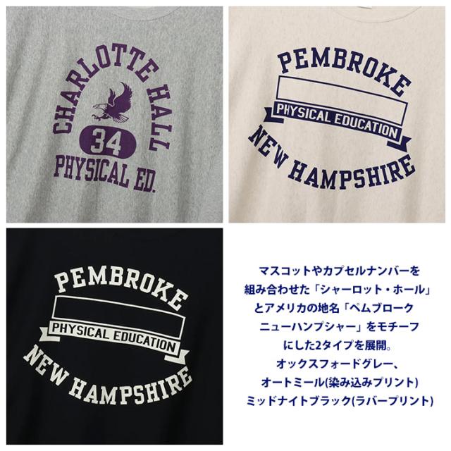 胸のプリントはチャンピオンブランドと親和性の高いカレッジ風グラフィックを
