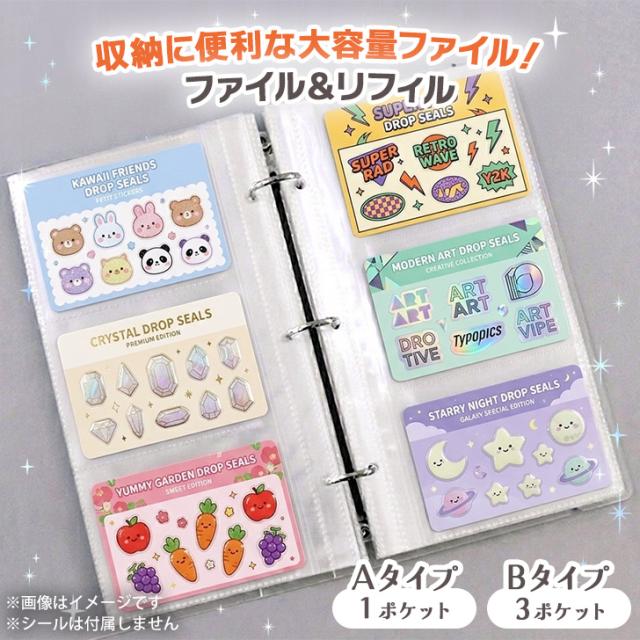 新作 シール・チケット・カードなどの収納に◎ 選べる2タイプ 大容量 リフィル&クリアファイル シール帳 シール手帳 A5 80ポケット 240ポケット シール収納 ドロップシール 立体シール チケットケース 透明