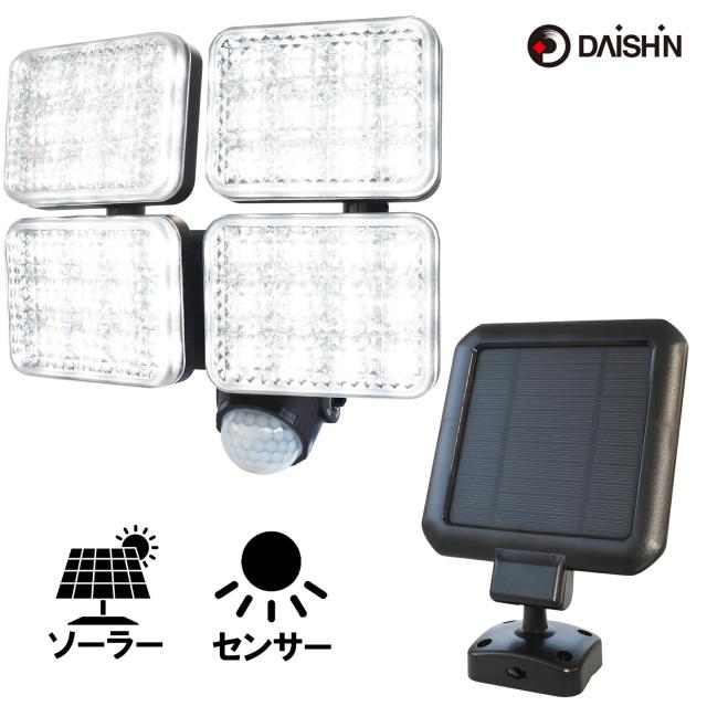 センサーライト 屋外 ソーラー 分離 人感 防犯 led 4灯式 ソーラーライト 屋外用センサーライト 外 防犯ライト 玄関灯 明るい 人感センサー クランプ 式 ネジ止め ポール取付 明り 外灯 防水 規格 防雨 自動点灯 長時間 物置 駐車場 スポット 強力 庭 大進 DLS-10T400