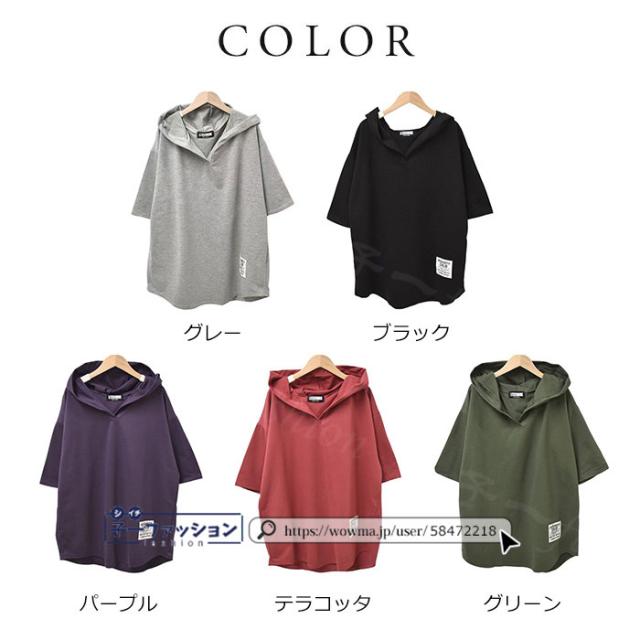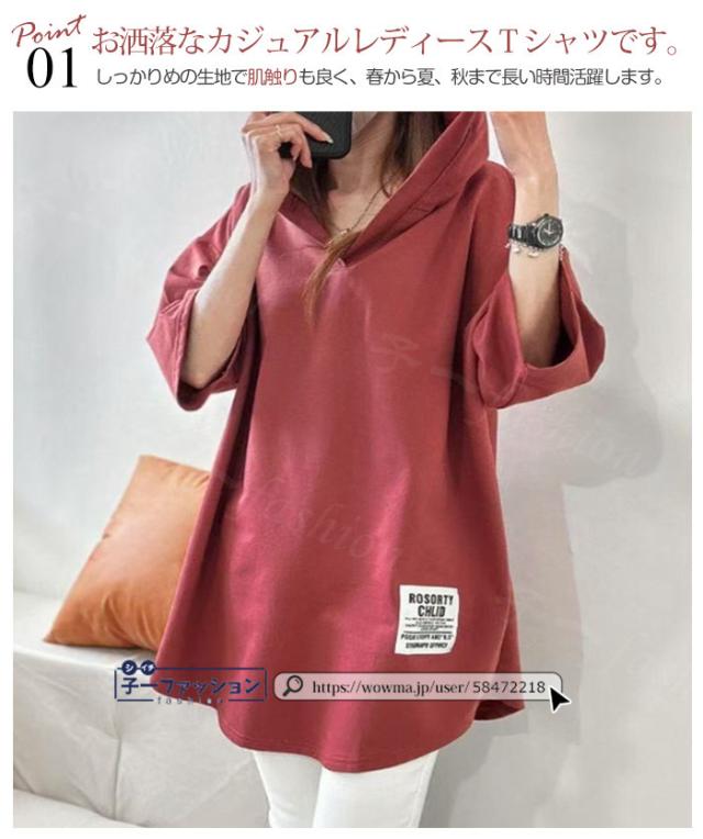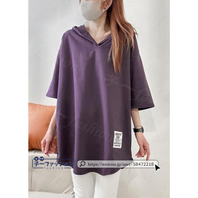 <72H限定・1点あたり1,090円!2点同時購入&クーポン利用で>Tシャツ 半袖 レディース 半袖 tシャツ 春新作 パーカー フード付き ロングtシャツ 送料無料 五分袖 ロゴ 大きいサイズ ゆったり チュニックtシャツ ビックtシャツ 春夏 五分袖 カットソー アシンメトリー