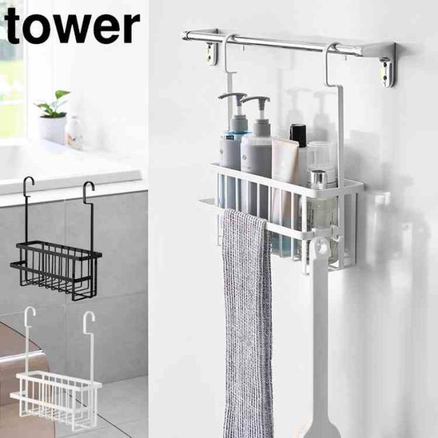 山崎実業 連結引っ掛けバスルームバスケット タワー 公式 tower 10648 10649 ホワイト ブラック ハンギングバスケット 引っ掛け かご 収納 大容量 浴室 お風呂場 バスルーム 浮く 衛生的 おしゃれ シンプル ランドリーパイプ タオルバー 浴室扉 吊り下げ ボトルラック 吊る
