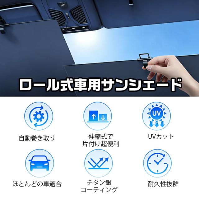 ★即納★ サンシェード 車 ロール式 フロントサンシェード 軽自動車 自動車 車載用 伸縮 遮光 断熱 日よけ 日除け UVカット 紫外線