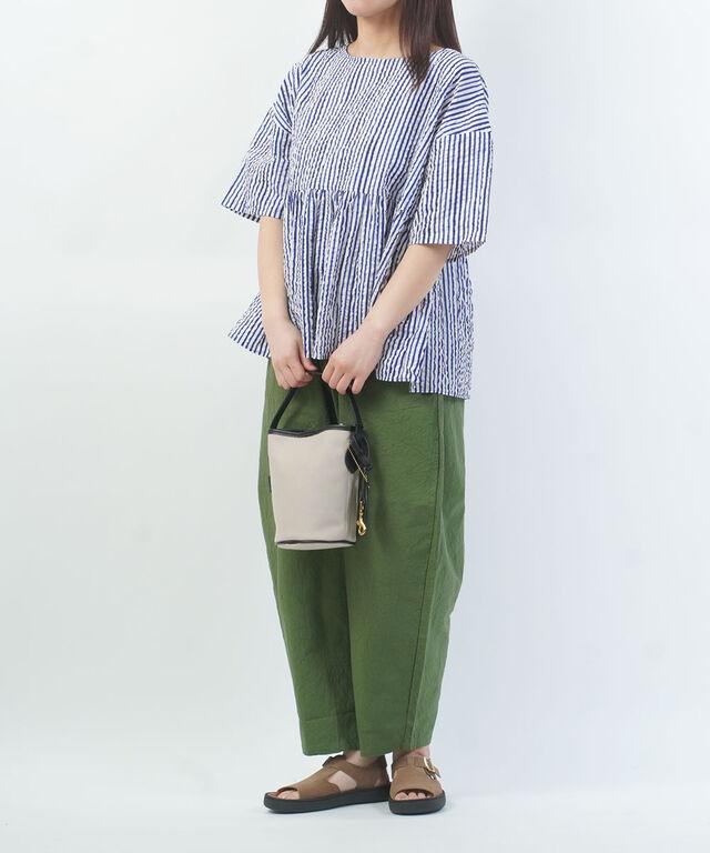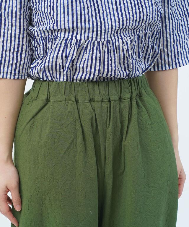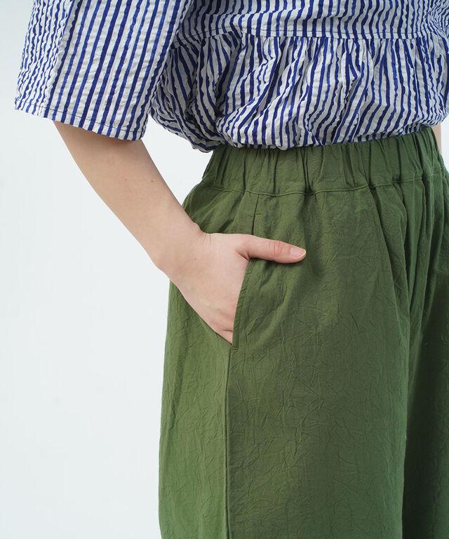 ウエストはゴムと内紐仕立てで、イージーな穿き心地。