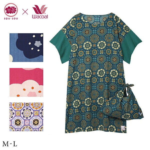 ワコール ルームウェア SOU・SOU ワンピース RNT217 M-L 綿100% 6分袖 [洛袋付き]