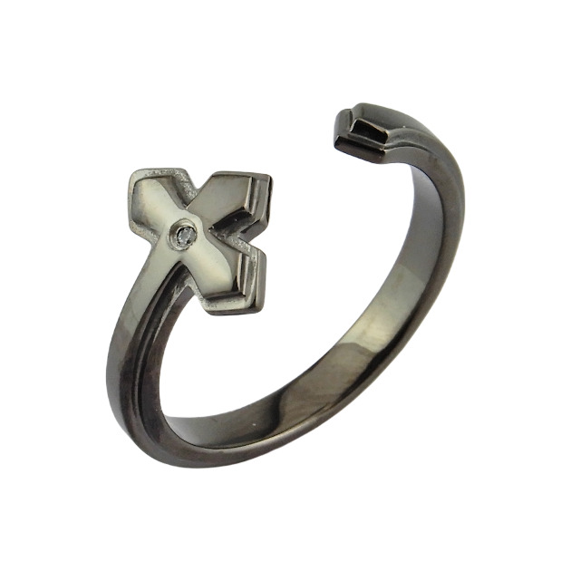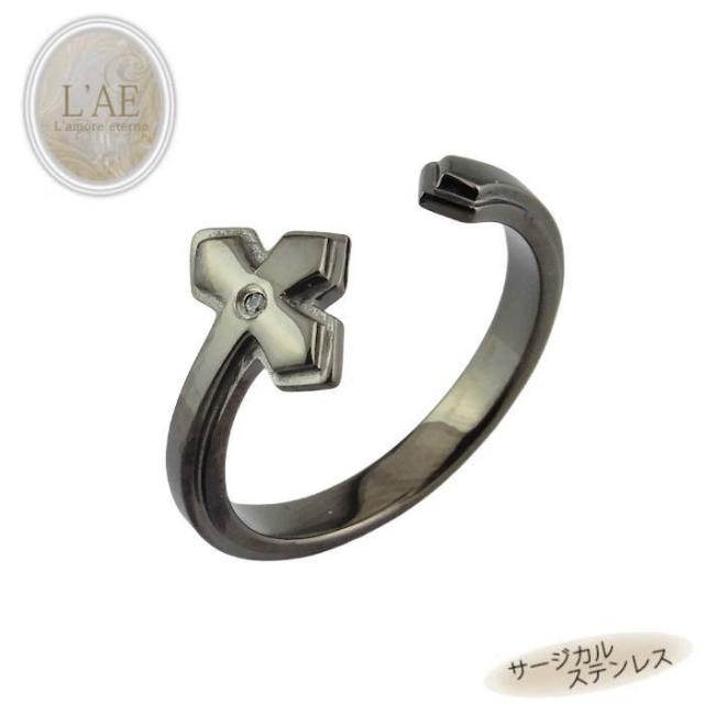リング 指輪 刻印 名入れ アイアンクロス ジルコニア 金属アレルギー対応 アクセサリー ブラック 黒 メンズ 錆びない アクセサリー ジュエリー プレゼント ギフト 誕生日 記念日