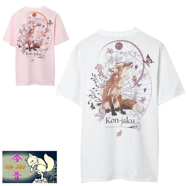 今昔 こんじゃく 狐 和柄 Tシャツ 半袖 メンズ 檸檬の花の咲くころ 参丸一 KJ-29259