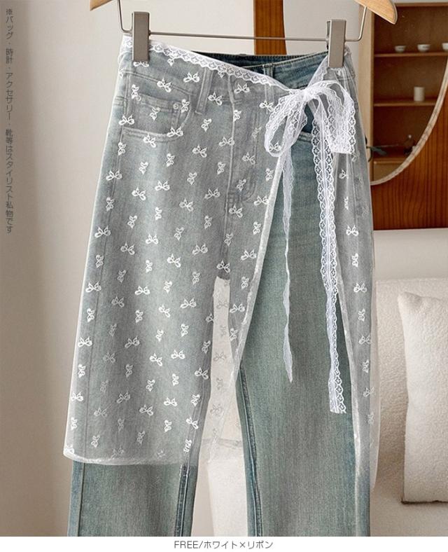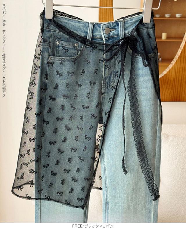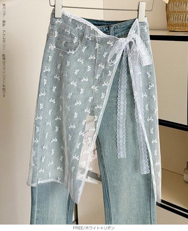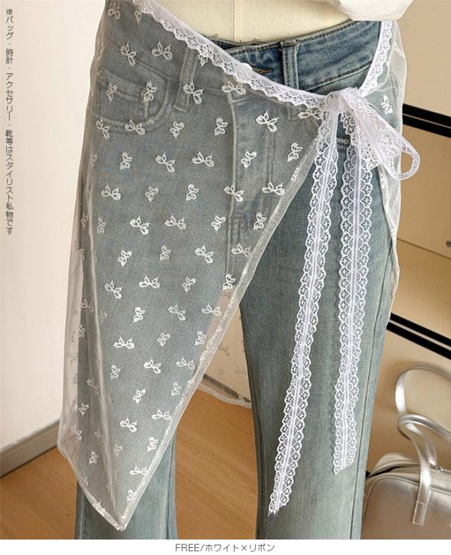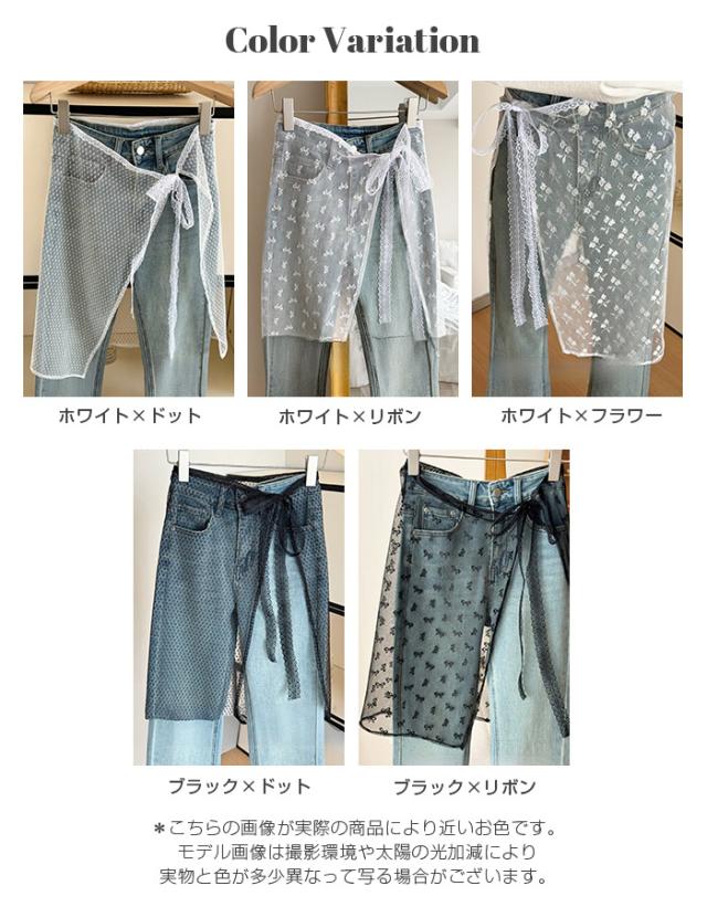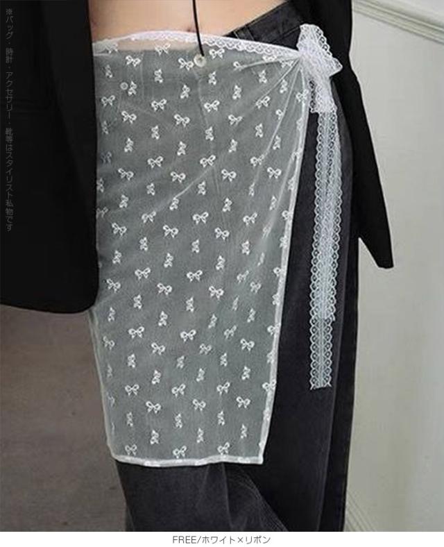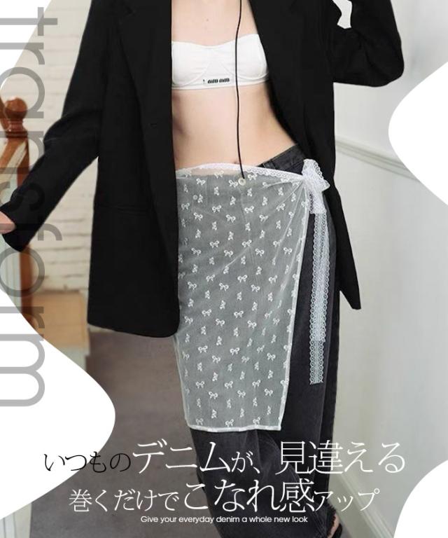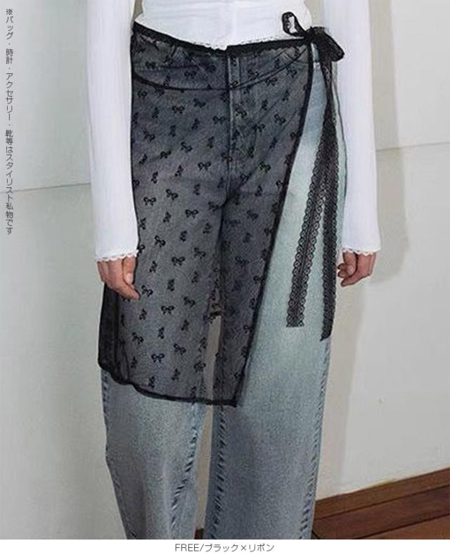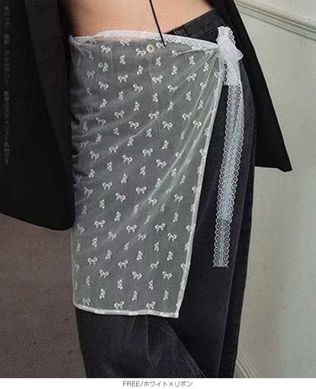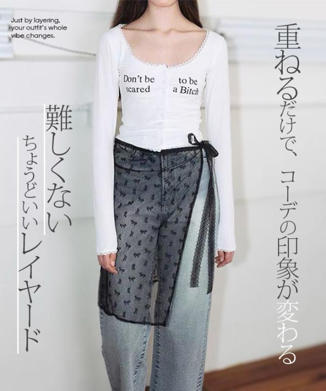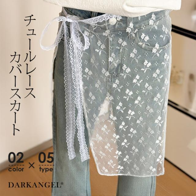 先着33名様50%OFFクーポン!レイヤード 巻きスカート シアーレース 刺繍 重ね履き カバースカート 透け感 レディース ボトムス 【 チュールレースカバースカート】 ダークエンジェル