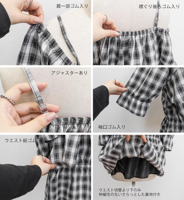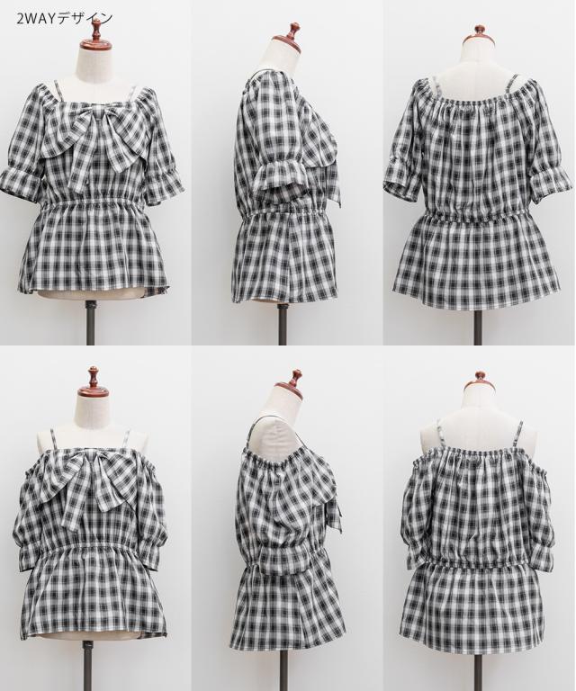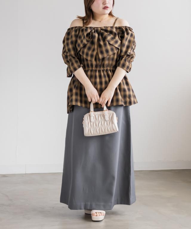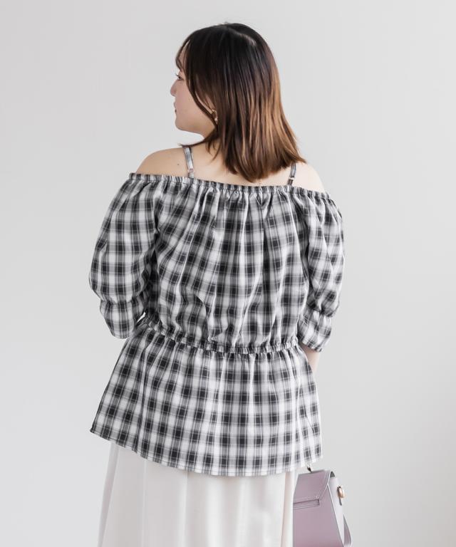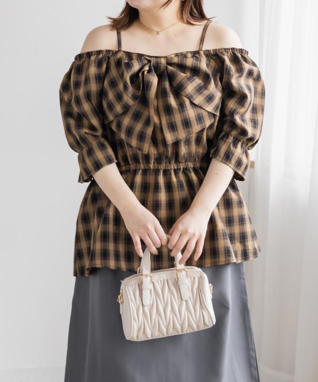 | 3Lを着てちょうどいい着心地でした。肩紐がついていてオフショルでもずり落ちる心配はないです◎チェック柄と大きめのリボンが可愛くて、トレンド感もたっぷりなデザインです!オフショルなのでデコルテや顔回りがすっきりした印象なって、着やせも抜群です。ウエストからふわっと広がるペプラムデザインになっていて、お腹周りもしっかりカバーしてくれます♪ |