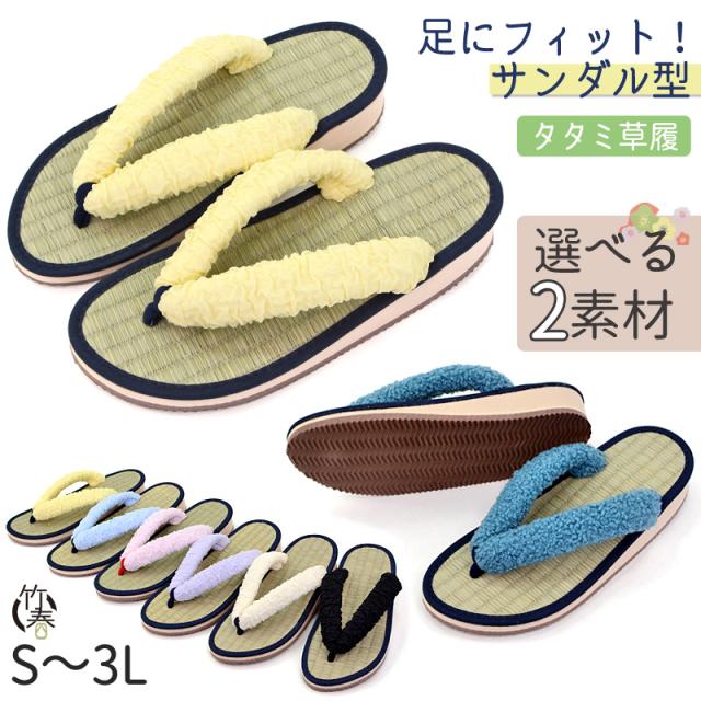 雪駄 レディース 日本製 竹春 草履 畳 タタミ い草 痛くない スポンジ底 軽量 雪駄サンダル タタミ雪駄 (kh-5200t2)【送料無料】 和装 履物 キッズ 子ども 室内履き サンダル スリッパ S M L LL 3L 無地 パステル ボア 選べる2素材 おしゃれ 可愛い ギフト 母の日 敬老