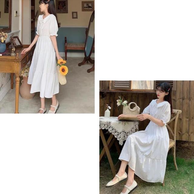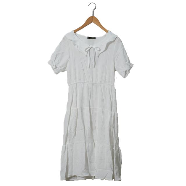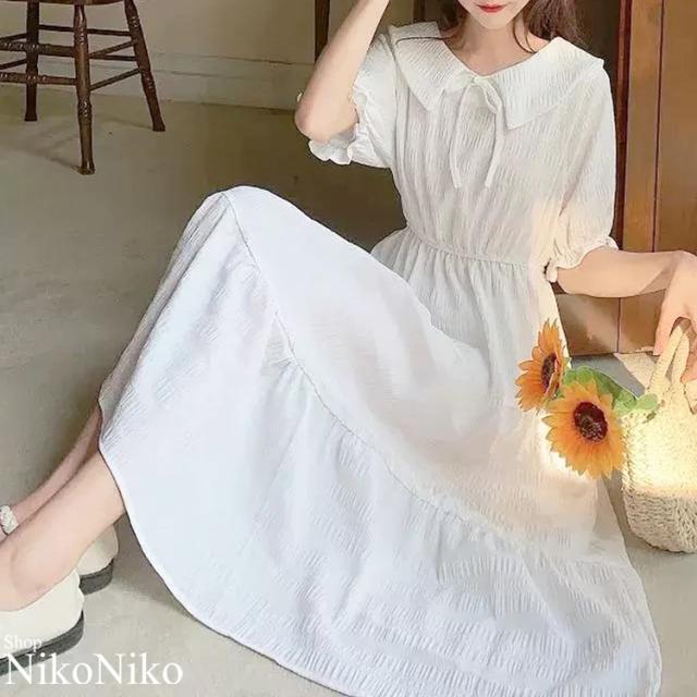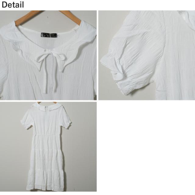 全品送料無料一部除く フロントリボン 襟付き ティアードワンピース ma 【即納】ティアード パフスリーブ しわ加工 シワ加工 リボン 蝶々結び 前リボン 夏ワンピース レディース 韓国 Y2Kファッション 韓国ストリート 流行り トレンド かわいい