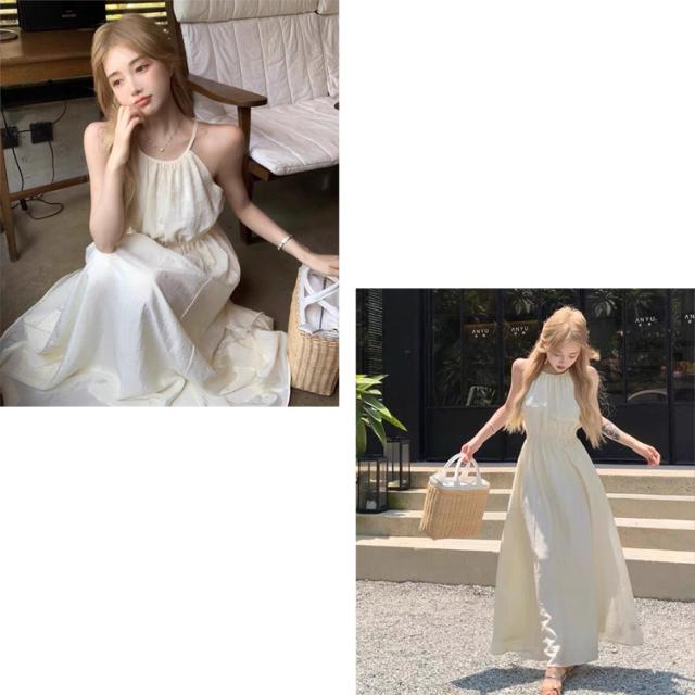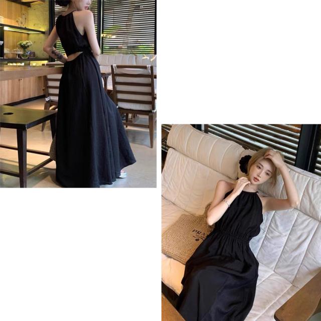 全品送料無料一部除く 腰あき ホルターネック ロングワンピース ma 【即納】ワンピース ワンピ ドレス ロングワンピ 高身長 低身長 体型カバー ゆったり 夏ワンピース カットアウト バックリボン ギャザー タック レディース 韓国 流行り トレンド かわいい