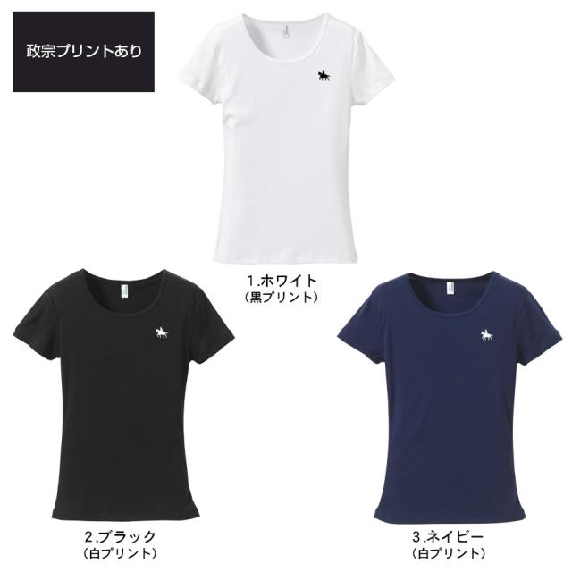 伊達政宗 フライスTシャツ カットソー スリム レディース 半袖 袖短め 選べる 無地 ワンポイント 政宗 騎馬像 Tシャツ トップス 6.2オンス 仙台 お土産 ご当地 ストレッチ (cab549404)