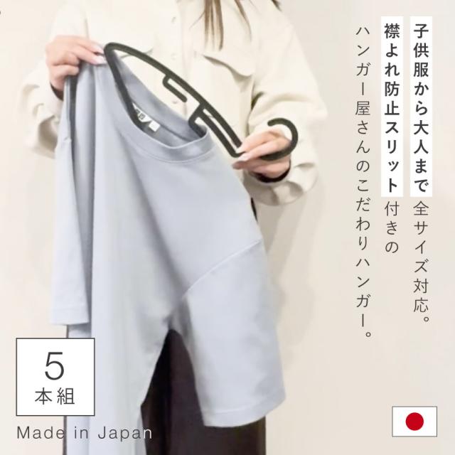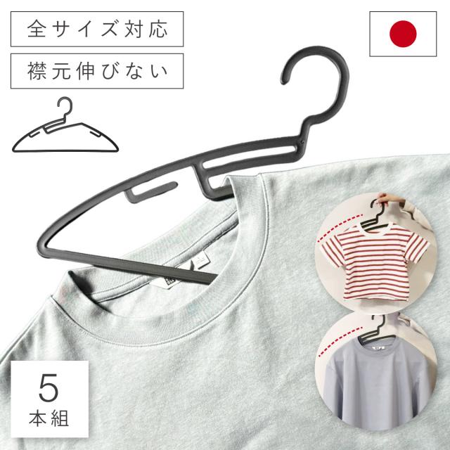 ハンガー 襟が伸びない 型崩れ防止 洗濯 そのまま収納 日本製 スリム 子供 大人 両用 形 崩れない かたくずれ防止 tシャツ シャツ 時短 ZEROシャツハンガーS1 5本組
