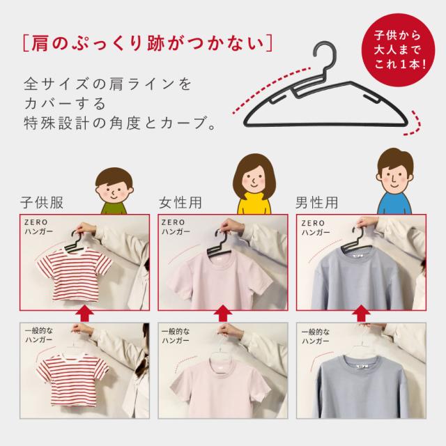 ハンガー屋さんのこだわりの日本製の高品質ハンガー。肩跡ゼロ!型崩れゼロ!襟よれゼロ!で型崩れをゼロに。子供服から大人まで全サイズ対応の「ZEROシャツハンガーS1」。