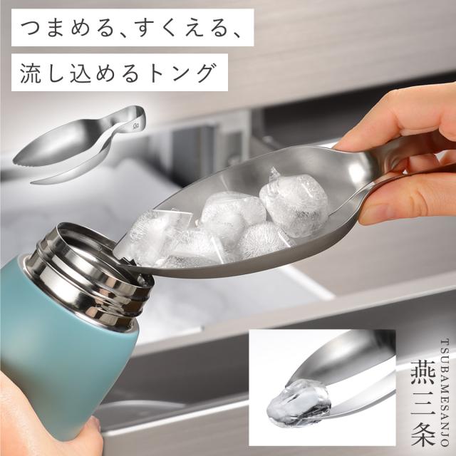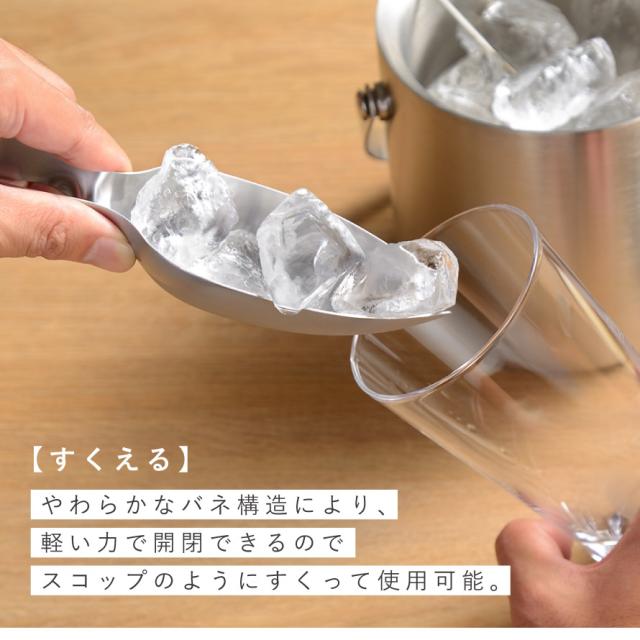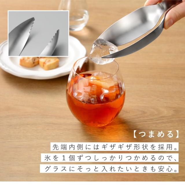 つまめる、すくえる、流し込める。「すくえるアイストング」。氷をスマートに扱える、トングとスコップの便利さを兼ね備えたアイストングです。ティータイムから晩酌、ドリンク作りまで幅広く活躍します。