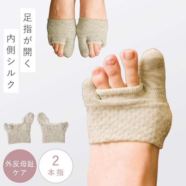 外反母趾 ソックス 足指 広げる 靴下 レディース 22-26cm 二本指ソックス シルク 肌側シルク外反母趾ケアサポーター(2本指タイプ)