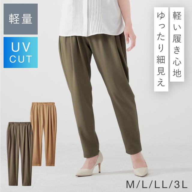 パンツ,ズボン,ボトムス,ボトム,軽量,軽い,コンパクト,ウエストゴム,総ゴム,ウエスト,ゴム,uv,uvカット,紫外線カット,紫外線,日焼け,日焼け対策,日焼け防止,対策,防止,日よけ,日除け,春,夏,春夏,M,L,LL,3L,大きいサイズ,大きめ,ゆったり,おしゃれ,お洒落,オシャレ,シンプル,カジュアル,きれいめ,体型カバー,細見え,着痩せ,かわいい,可愛い,大人,レディース,女性,お年寄り,高齢者,シニア,40代,50代,60代,70代,動きやすい,楽ちん,らくちん,カーキ,グリーン,緑,モカ,ブラウン,茶色,