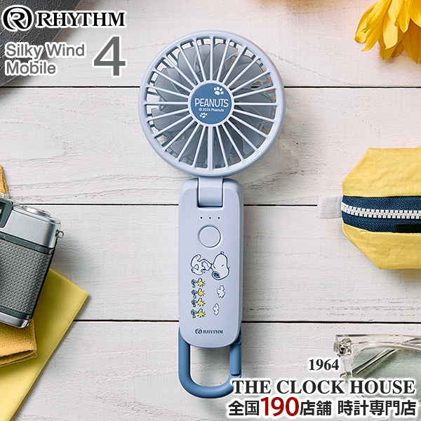リズム ハンディファン スヌーピー 扇風機 大風量 3way カラビナ付き ブルー 静音 卓上 小型 Silky Wind Mobile 4 9ZF042MS04