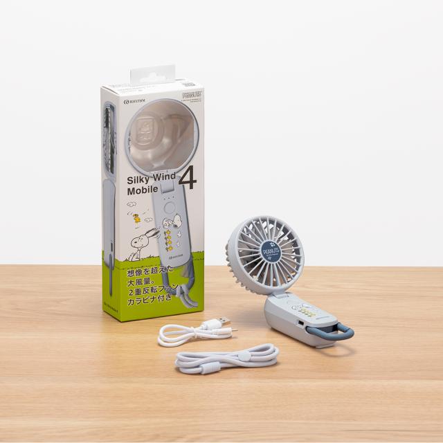 2重反転ファンで大風量のハンディーファンSilky Wind Mobile 4(シルキーウインドモバイル4)よりスヌーピーデザインを採用した「PEANUTSモデル」が登場です。