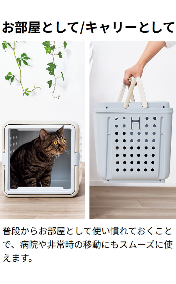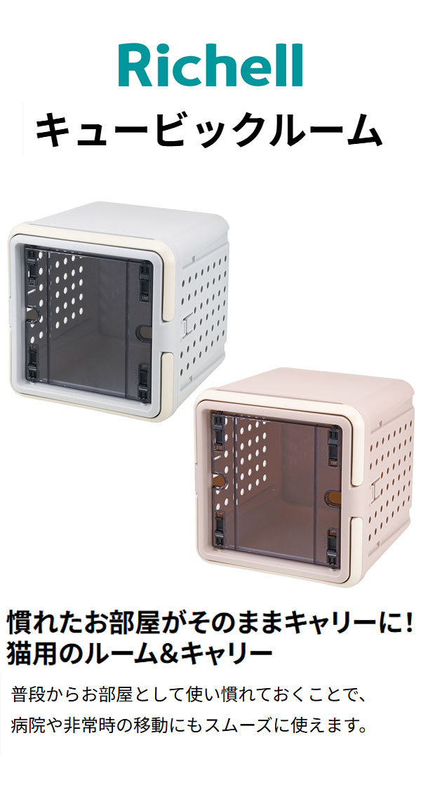リッチェル 猫用 キャリー お部屋 ボックス 2way コンテナ クレート ペットキャリー ハード 箱型 ベッド 居住 空間 防災 避難 お出かけ 帰省 通院 キュービックルーム 猫 ペット用【送料無料】