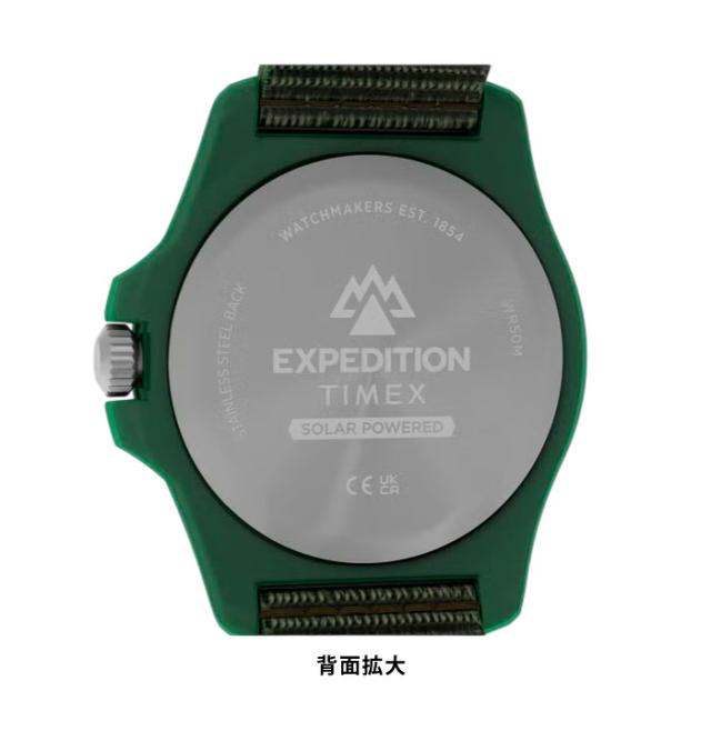 あらゆる光源で充電し、フル充電すると約4か月間連続駆動するソーラームーブメントを搭載した<エクスペディション>。