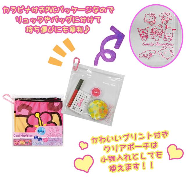 サンリオキャラクターズ クールマフラー 冷感タオル ポーチ付 ひんやり ネッククーラー 熱中症対策 Hello Kitty キティ シナモロール クロミ マイメロ ポムポムプリン ポチャッコ 夏 通勤 通学 アウトドア プレゼント 瞬間冷却 CLM0042