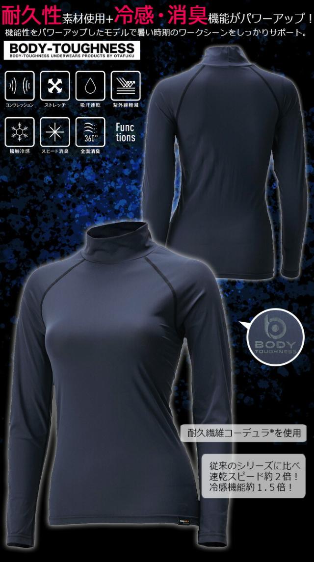 【1点までネコポス可】クールコンプレッション BT パワーストレッチ COOL EVO ロングスリーブ ハイネックシャツ レディース BODY TOUGHNESS(ボディタフネス) JW-737 おたふく手袋 接触冷感 消臭 吸汗 速乾 UVカット ストレッチ インナー 作業服 春夏用