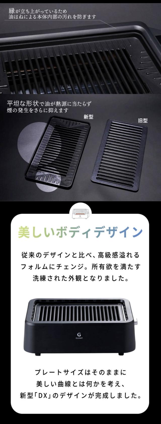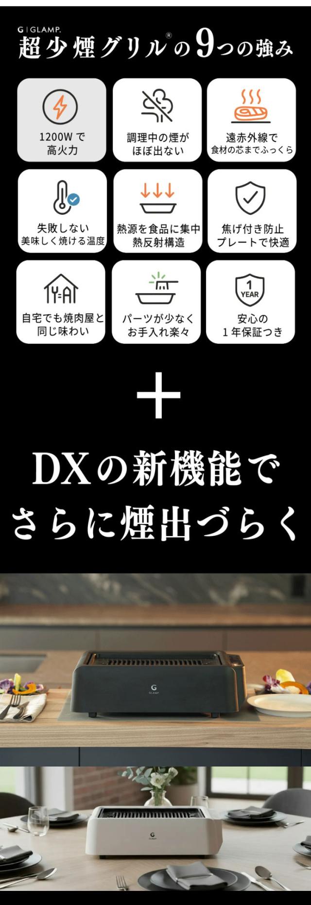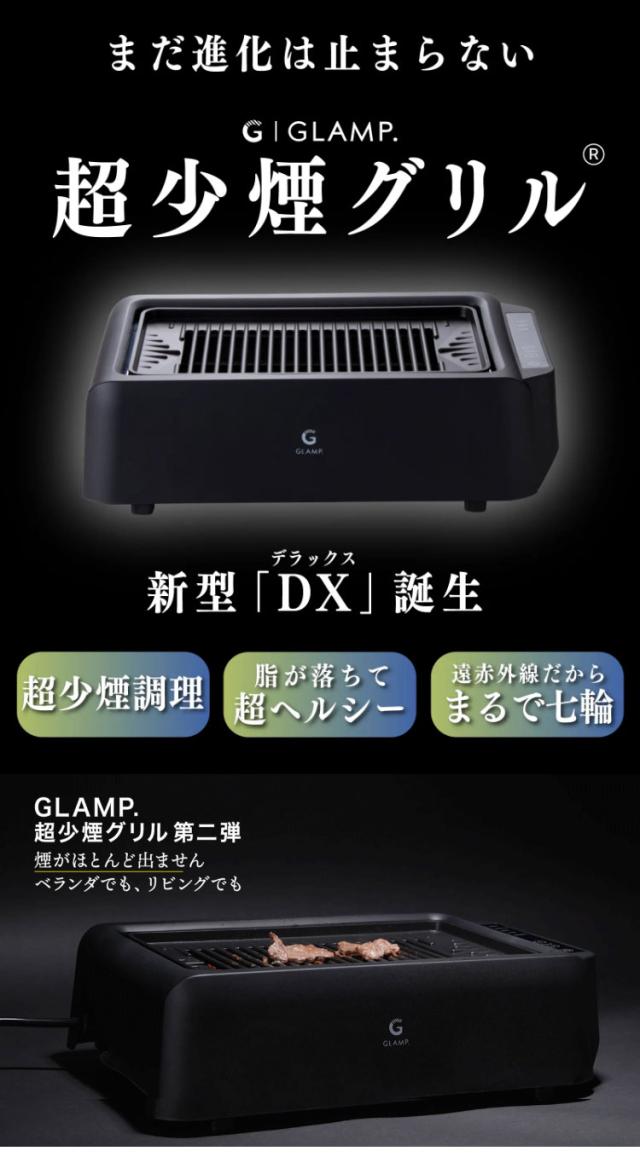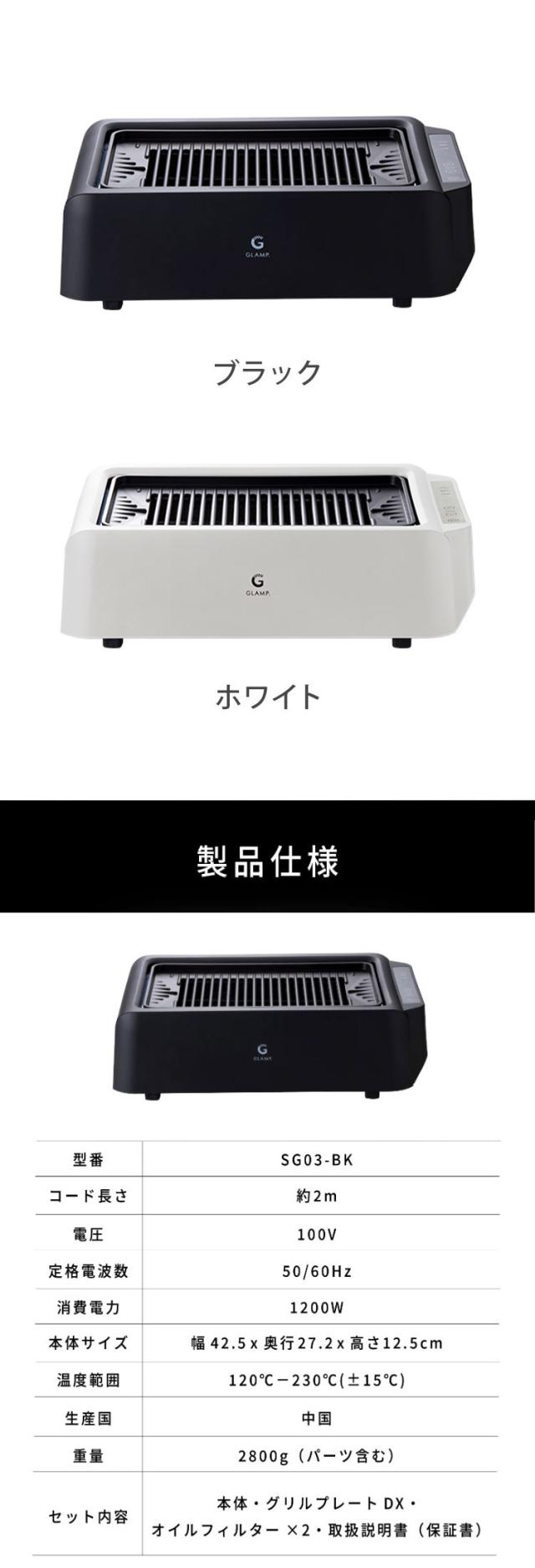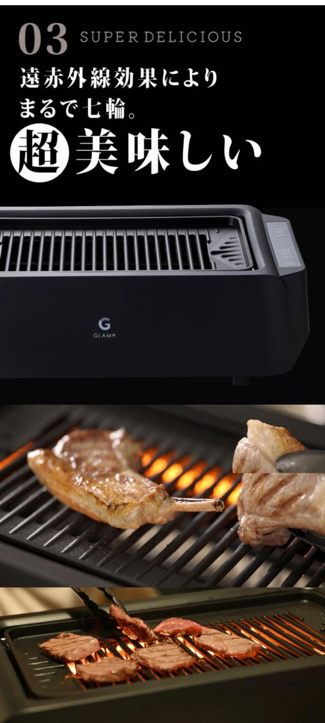 GLAMP 新型 超少煙グリルDX 遠赤外線 減煙 煙が少ない 煙が出にくい 室内 焼き魚 焼肉 焼き鳥 おうち焼肉 ホットプレート コンロ グランプ スモークレス お手入れ簡単 電気 ヘルシー おしゃれ SG03【送料無料】