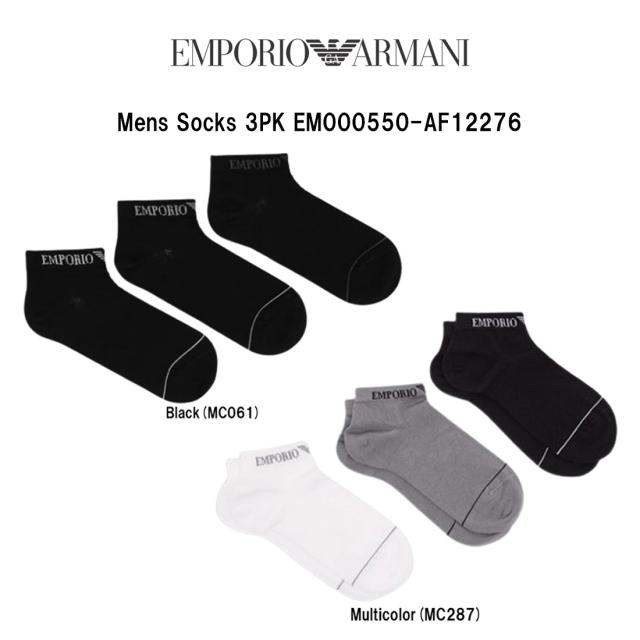 EMPORIO ARMANI(エンポリオアルマーニ)ソックス 3足組 セット 靴下 アンクル丈 ショート くるぶし ロゴ シンプル メンズ 男性用 3PK EM000550-AF12276