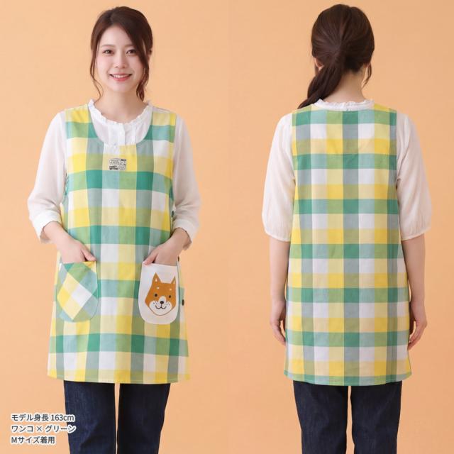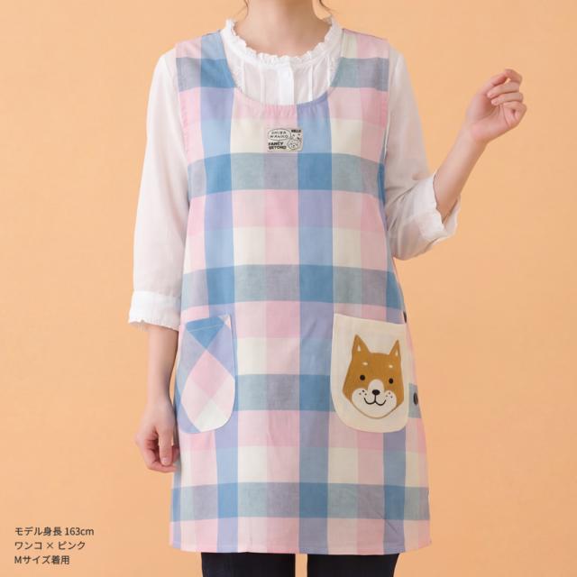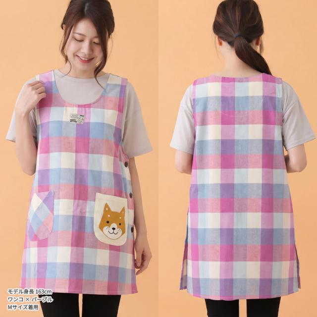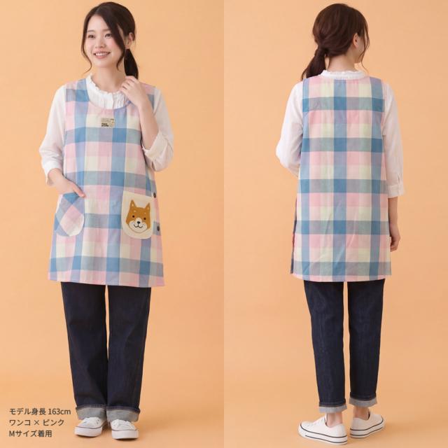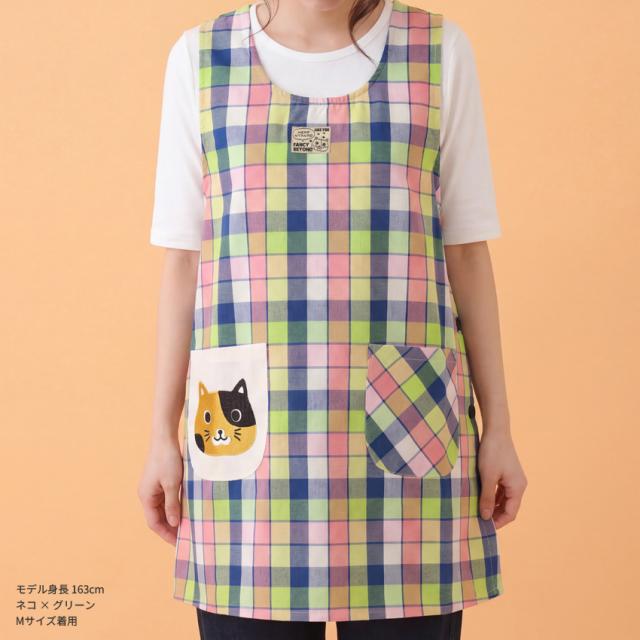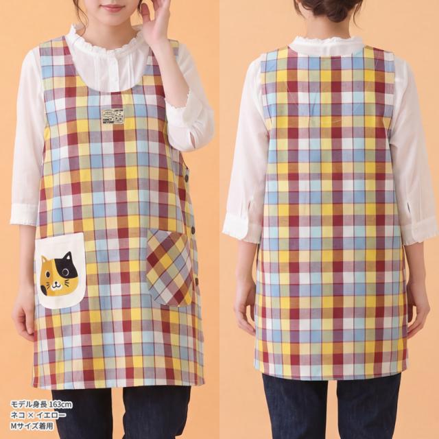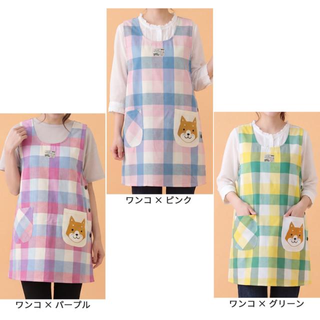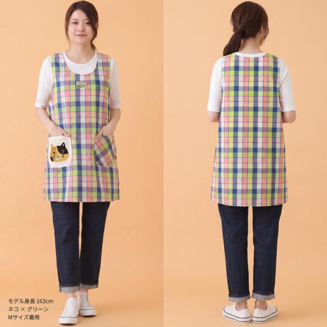 M~5Lサイズ お尻が隠れるアニマルエプロン ワンピース エプロン チェック 猫 ネコ イヌ ウサギ ベスト 綿 ポリエステル ダブリエ チェック柄 保育士 ロング ユニフォーム シンプル かわいい 大きいサイズ レディース M L LL 2L 3L 4L 5L 大きいサイズ キャラクター