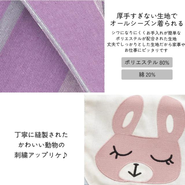 ポケットには可愛い動物の 刺繍アップリケ付き♪ 見ていると気持ちがほっこりする 可愛いエプロンです。