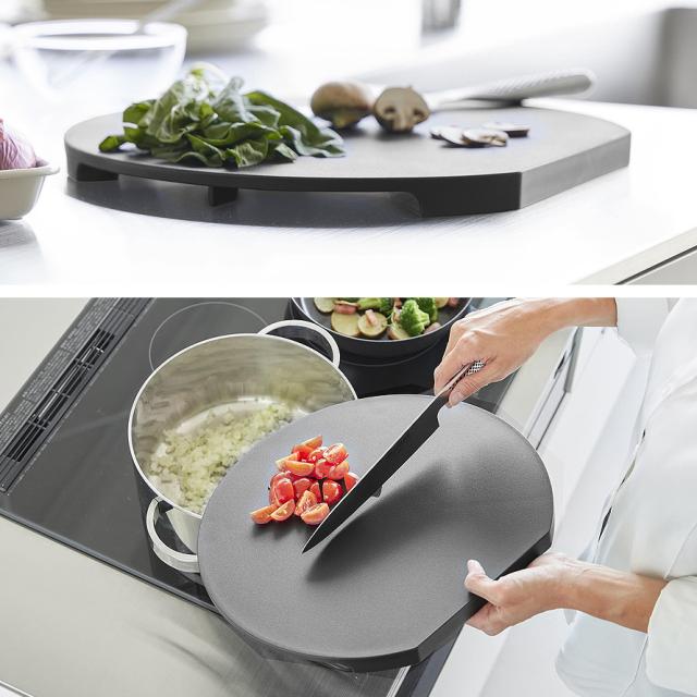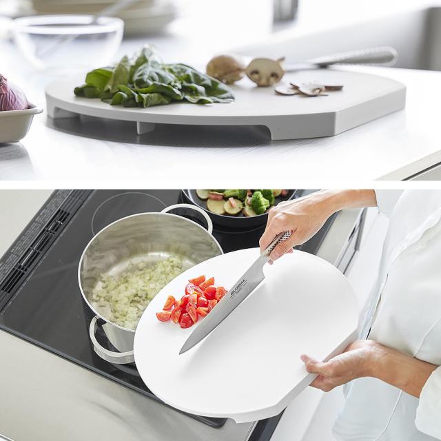 滑りにくいクッション付きで安定感があり、刻んだ食材をのせたままでも、まな板を広く使ってさまざまな食材を一度にカット可能。
