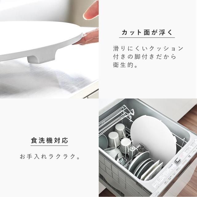 マグネットでキッチンパネルなどに浮かせて収納できる、食洗機対応の抗菌まな板Lサイズです。浮かせて収納できるため通気性がよく、乾きやすく衛生的。