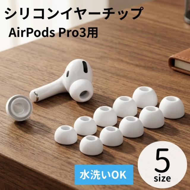 AirPodsPro3 イヤーチップ イヤーキャップ イヤーピース シリコン 交換 交換用 5サイズ 水洗い 清潔 落ちない 痛くない フィット感 外れない 快適 柔らかい 耐久性 ランニング ジム 在宅ワーク 長時間 エアーポッツプロ3 送料無料