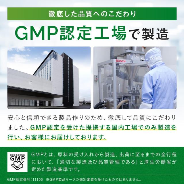 【GMP認定工場】国内GMP認定工場で一貫製造しています。原料の受け入れから製造・出荷まで厳格な品質管理基準を徹底し、安全で信頼できる製品をお届けします。
