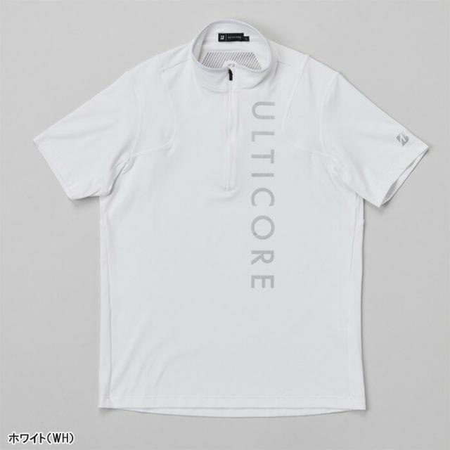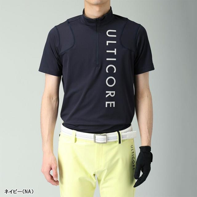 ULTOCOREの大きなロゴが特徴の半袖ハーフジップシャツ。内側の衿下には水分(汗)に濡れると冷たく感じる冷感プリントを施し猛暑対策に。背中部分の肩回りはラグランスリーブ仕様になっていて動きやすさも魅力です。